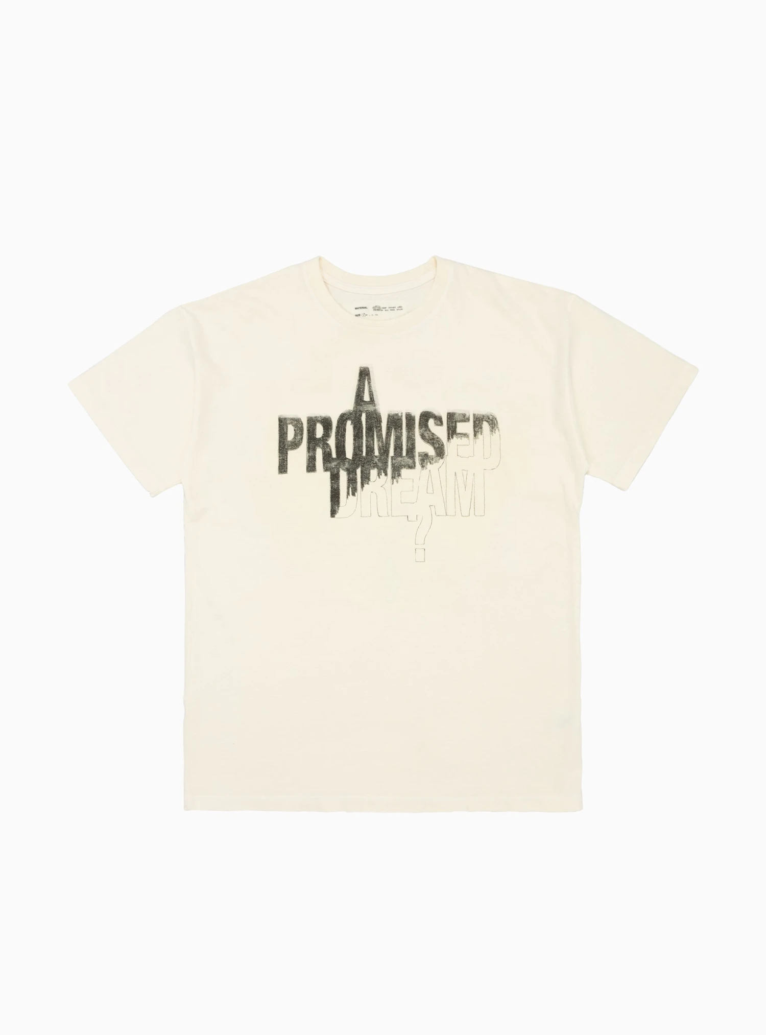 Made in the USA from mid-weight cotton jersey, this bone-hued A Promised Dream T-shirt from One of These Days is cut to a relaxed silhouette with dropped shoulders and features printed graphics at the chest and back.