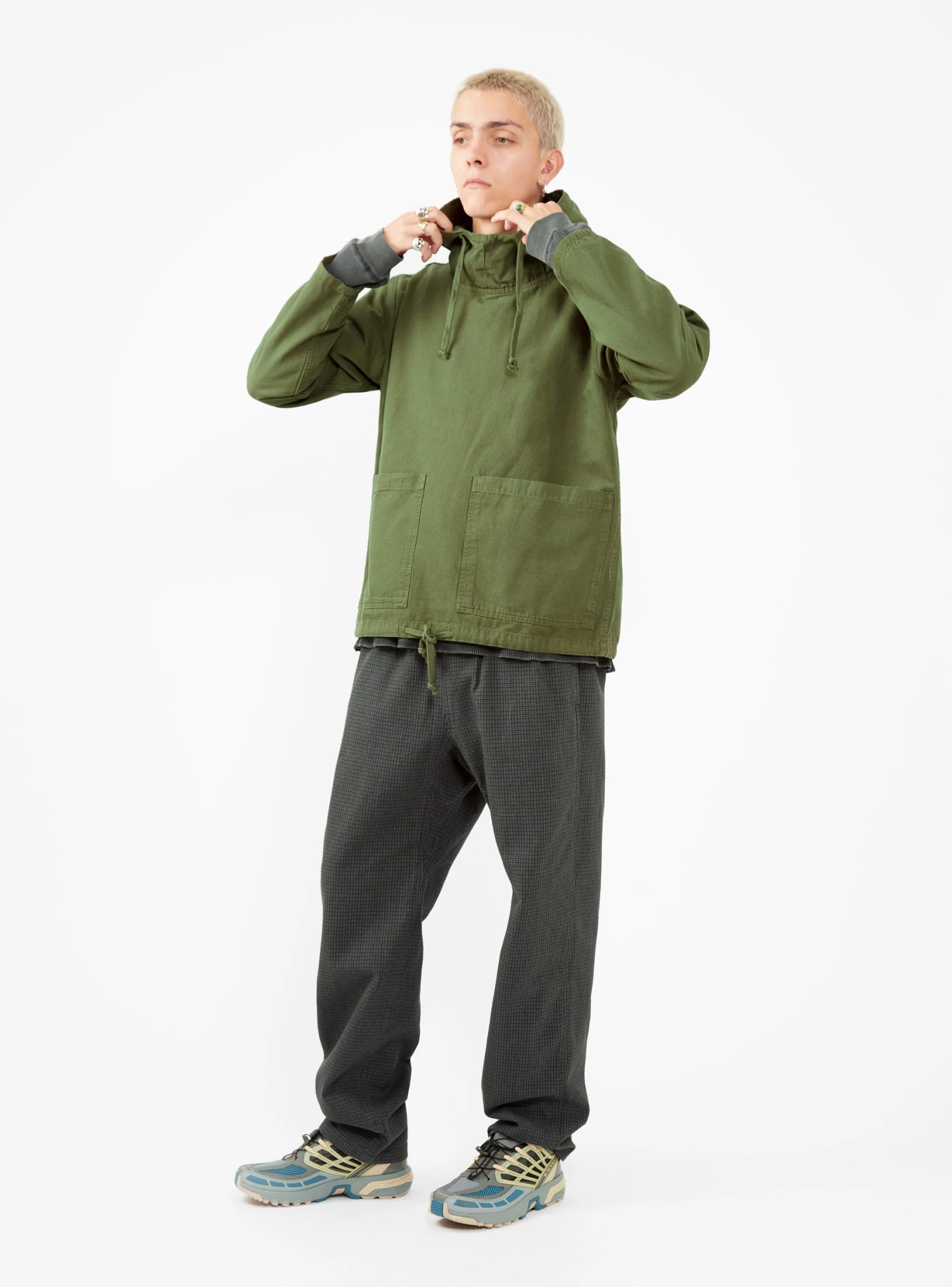 - Drawstring hood & hem