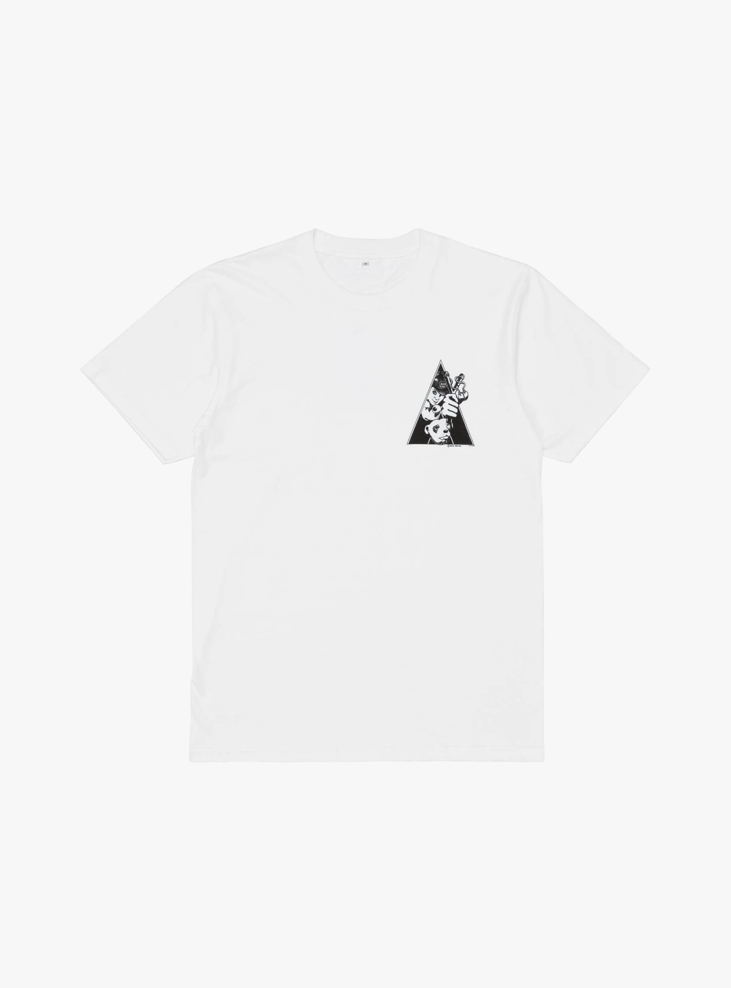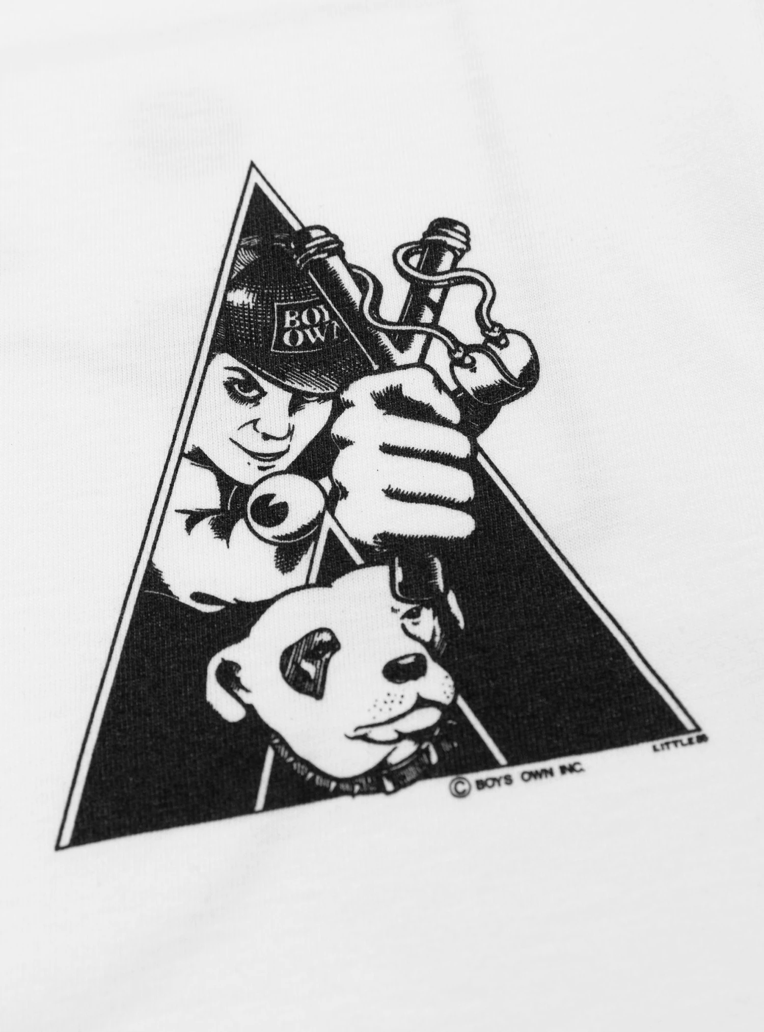 The Clockwork T-shirt from Boy’s Own comes in a white. Made from cotton and falling to a regular fit, the tee is printed with one of the zine’s iconic motifs, a spin on the original graphic from ‘A Clockwork Orange.’