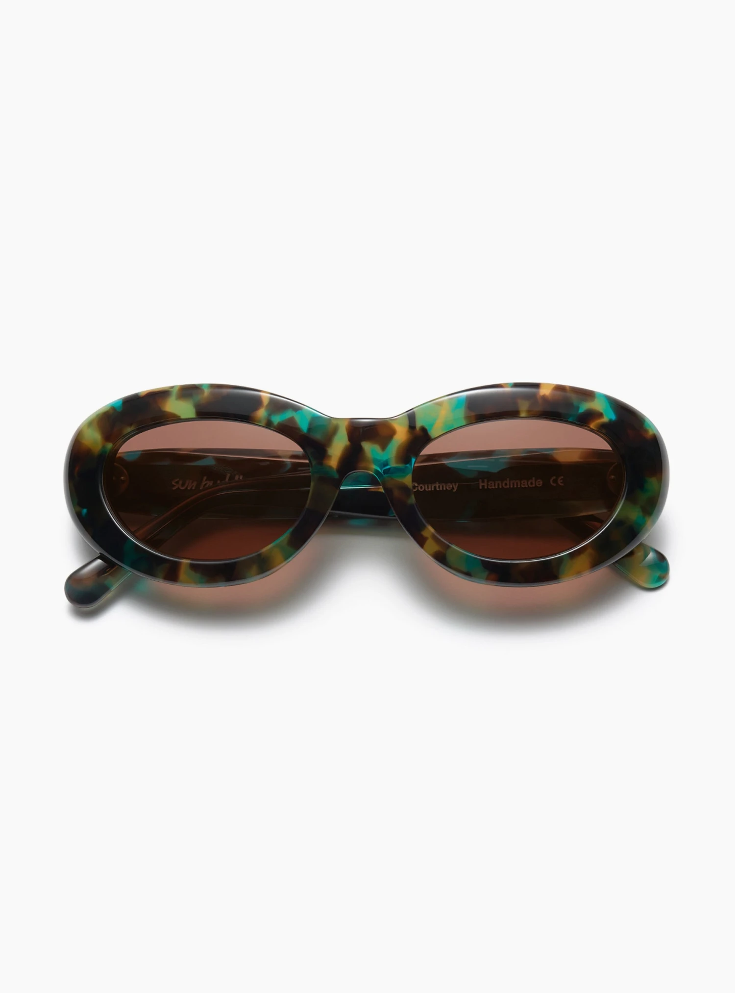 Handmade from sturdy Italian acetate, these ‘Aqua Tortoise,’ transparent, frame Courtney sunglasses from Sun Buddies feature tonal Carl Zeiss lenses to provide 100% UV protection.