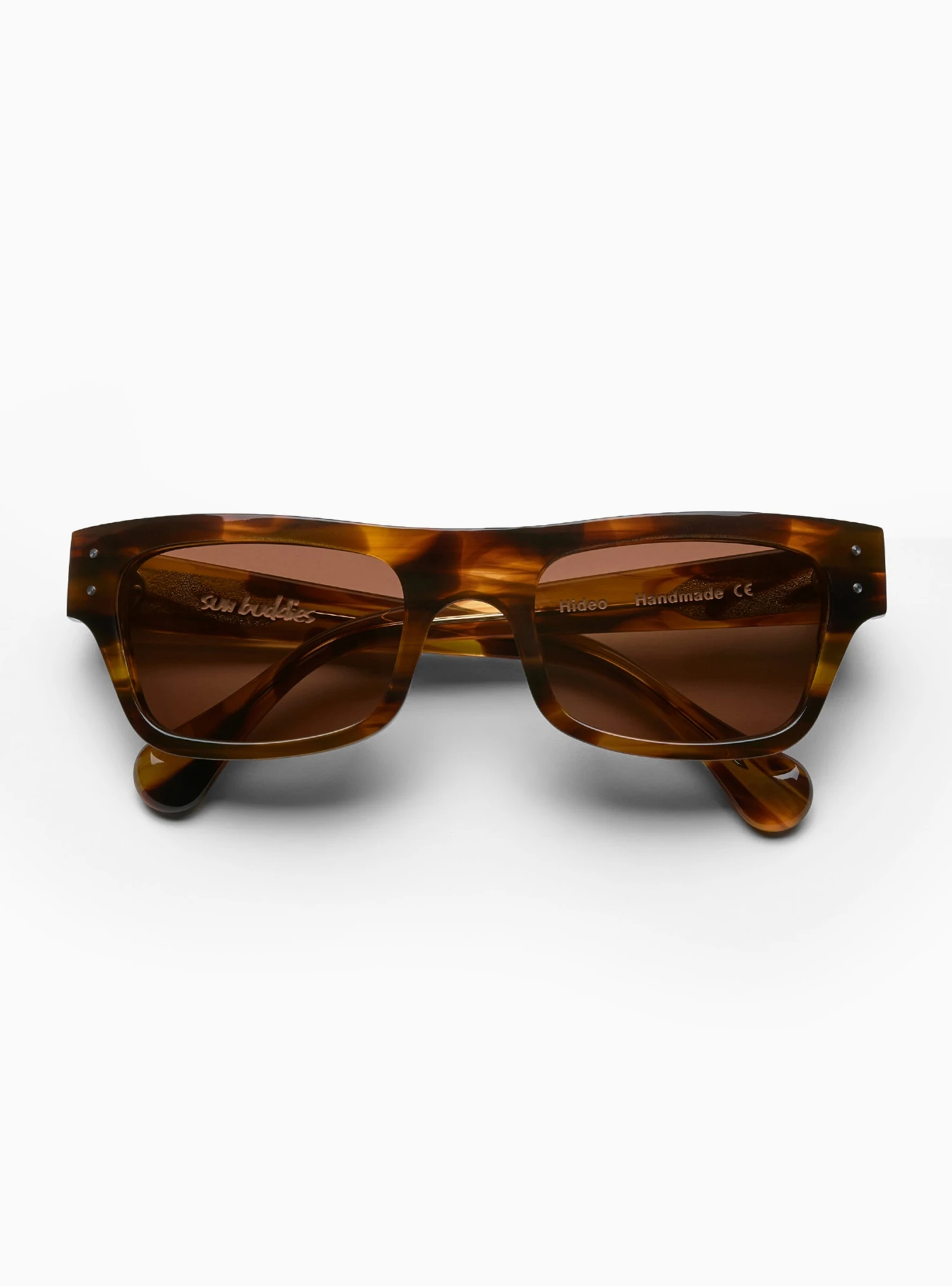 Handmade from sturdy Italian acetate, these orange-strokes Hideo sunglasses from Sun Buddies feature brown Carl Zeiss lenses to provide 100% UV protection.