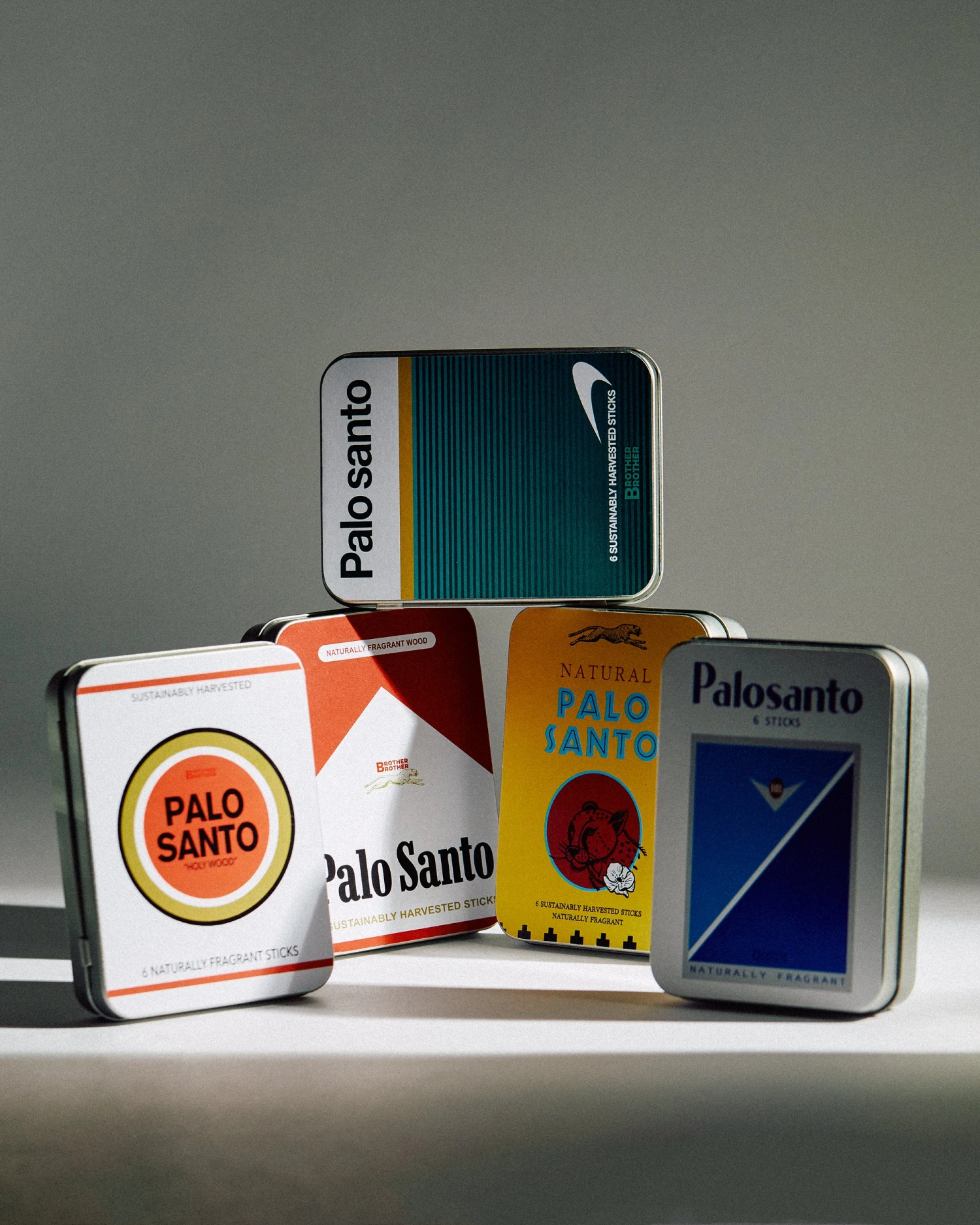 The Newps Palo Santo Tin from LA-based Brother Brother contains six, sustainably-harvested sticks of Palo Santo: a sweet, woody fragrance. A wholesome, zen approach to making smoking cool, the tin takes cues from old cigarette packets.Â