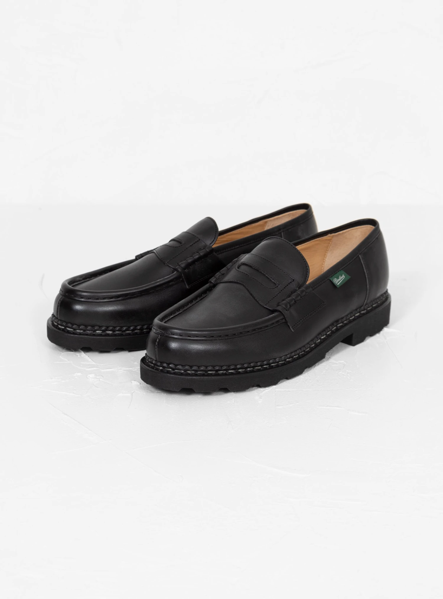 Inspired by the label’s Michael silhouette, these black Reims loafers from Paraboot are made in France from leather and set on chunky rubber soles with Norwegian-welt construction.