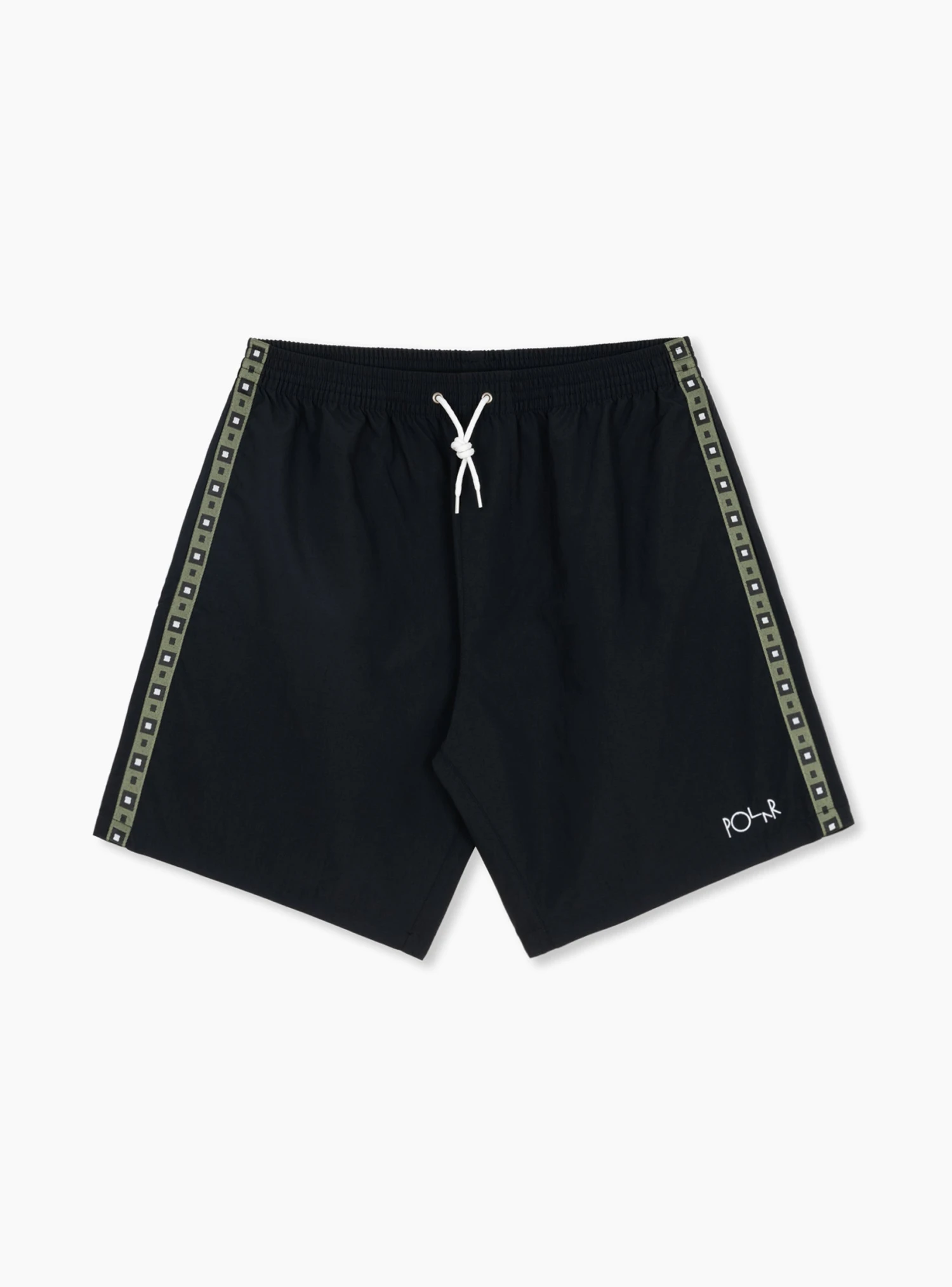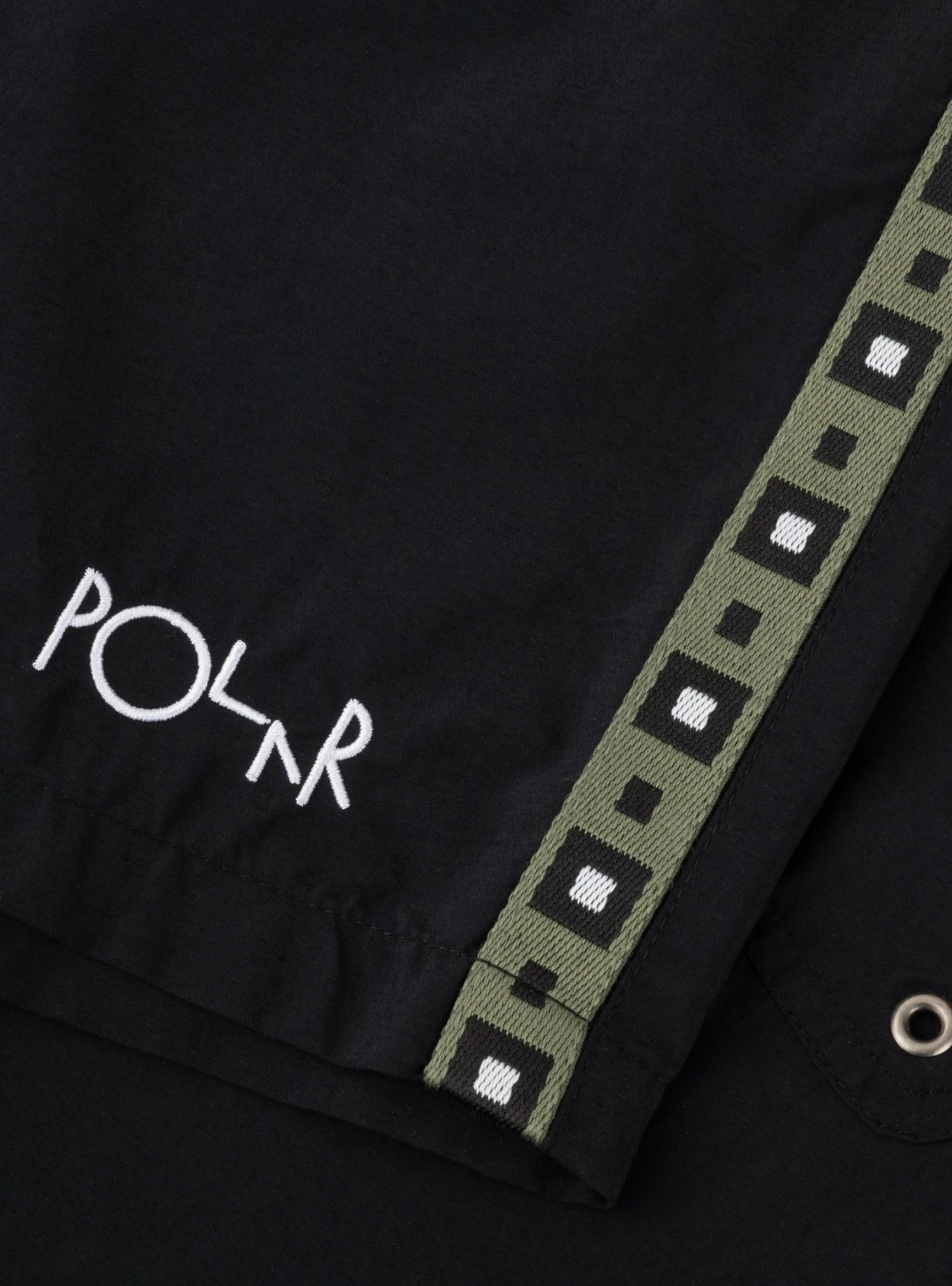 The Square Stripe Swim Shorts from Polar Skate Co. arrive in a black, with a jade green stripe at the side. Made in Portugal, the shorts follow a regular swim short shape with an elasticated waist, drawstrings and a mesh lining. A logo at the left leg, as well as a rear patch pocket with drainage holes finish the shorts.