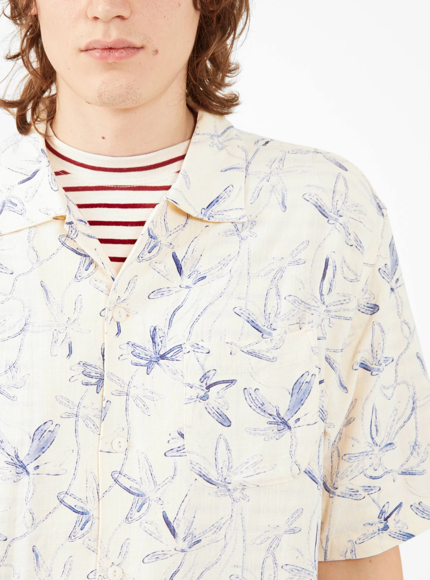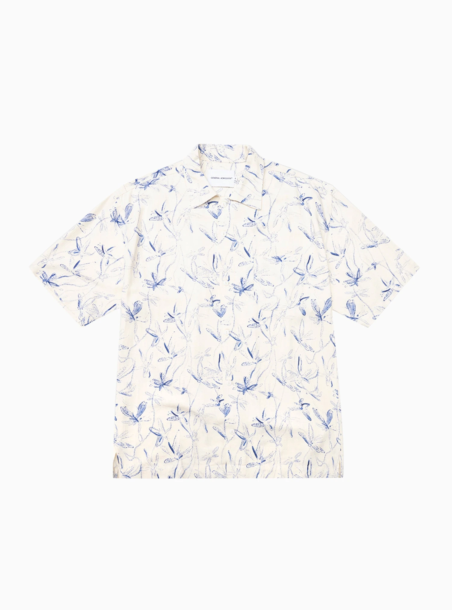 Printed with blue florals, this ecru shirt from General Admission is cut to a relaxed silhouette with dropped shoulders and features a patch pocket at the chest.