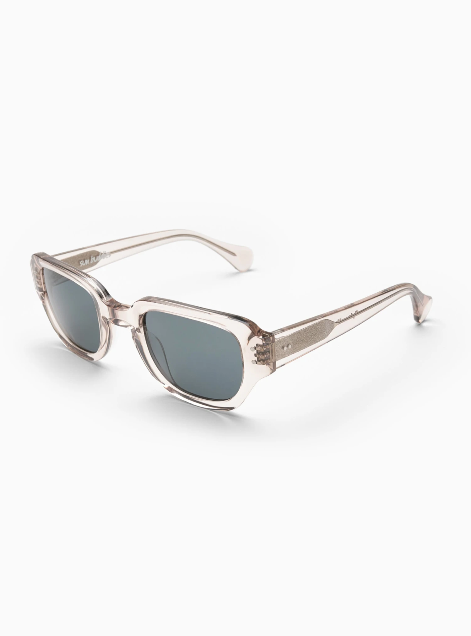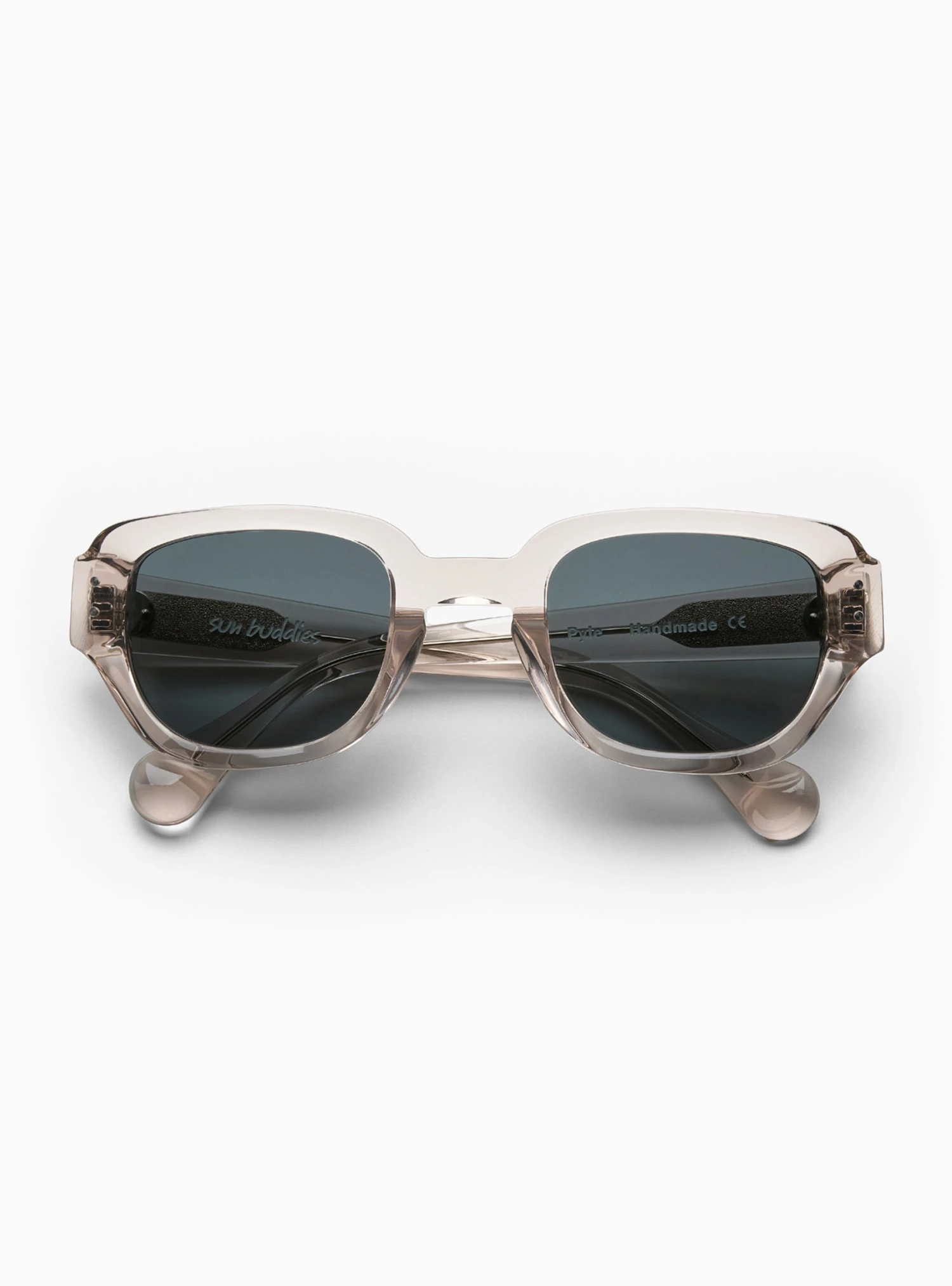 Handmade from sturdy Italian acetate, these transparent Pyle sunglasses from Sun Buddies feature black Carl Zeiss lenses to provide 100% UV protection.
