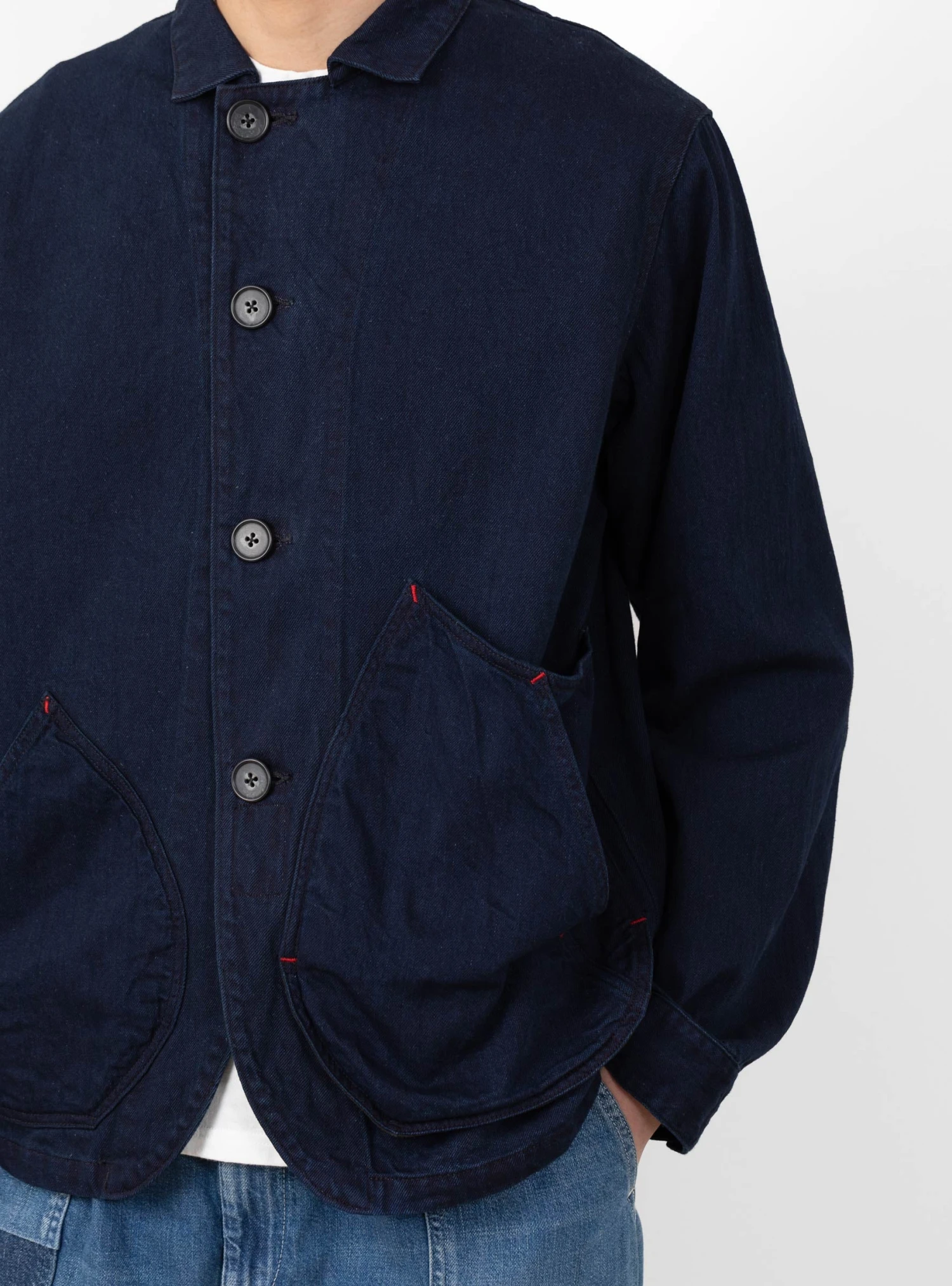 The Ringoman Coverall from Kapital arrives in an Indigo denim. Made in Japan, the jacket is cut from a mixture of 10oz and 8oz Japanese Denim, which give it weight and texture. The garment falls to a regular fit with a curved hem and features a full button front, as well as two hand and stow pockets. It is rounded off with a distinctive large rear stow pocket, which has multiple openings.