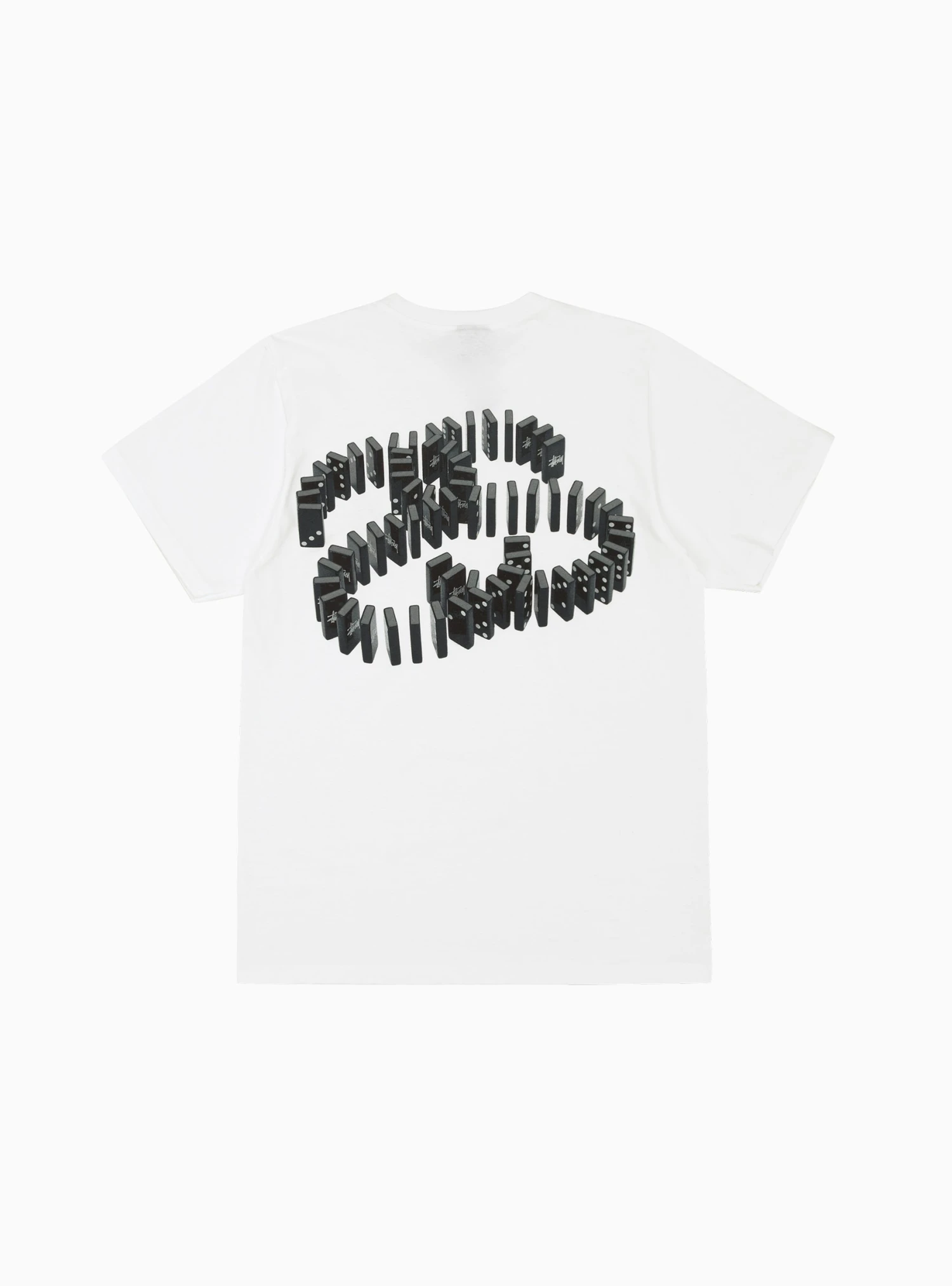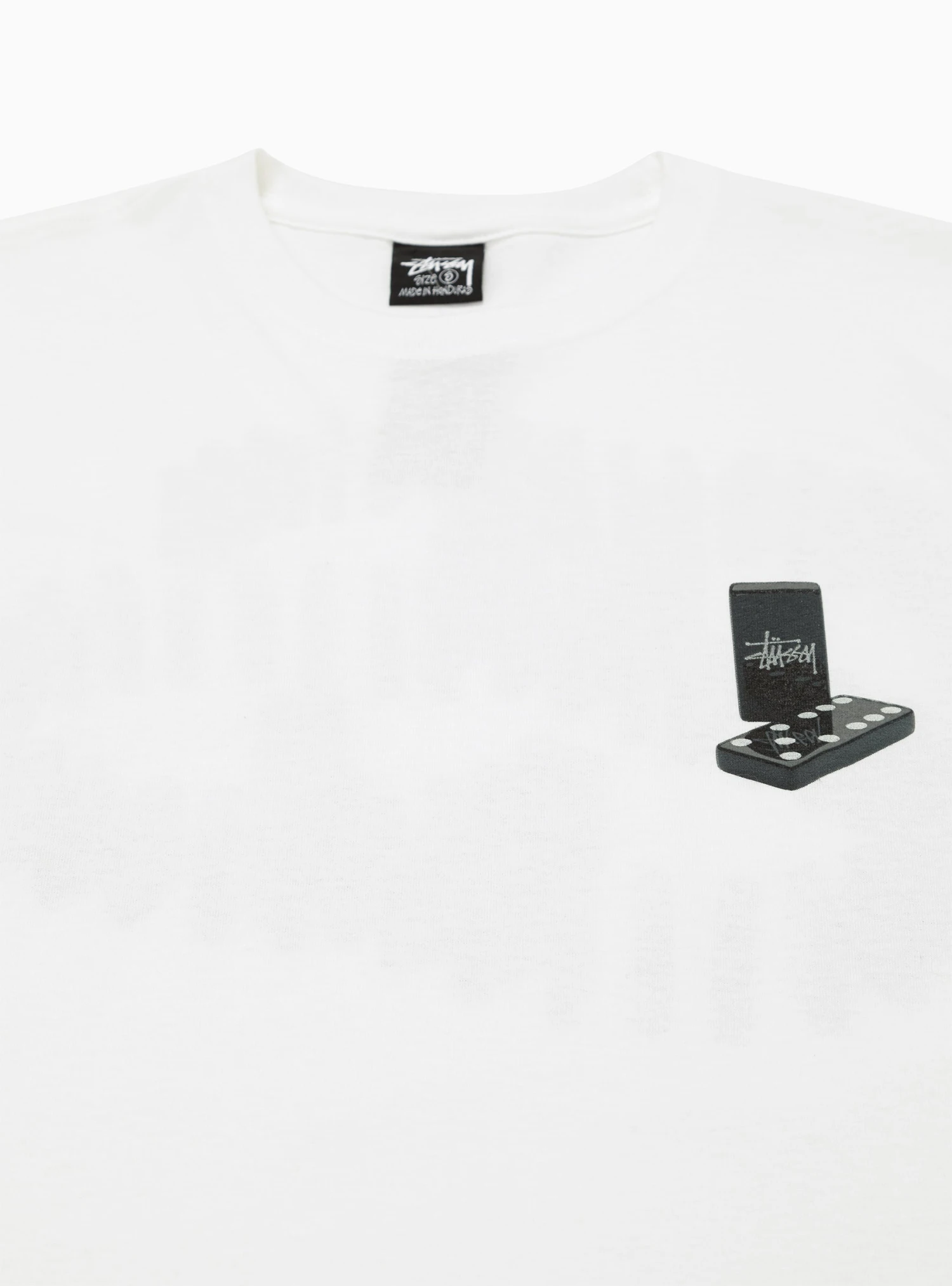 Made from cotton jersey, this white Dominoes T-shirt from Stüssy’s Summer ’23 collection is cut to a relaxed silhouette with printed graphics at the chest and back.
