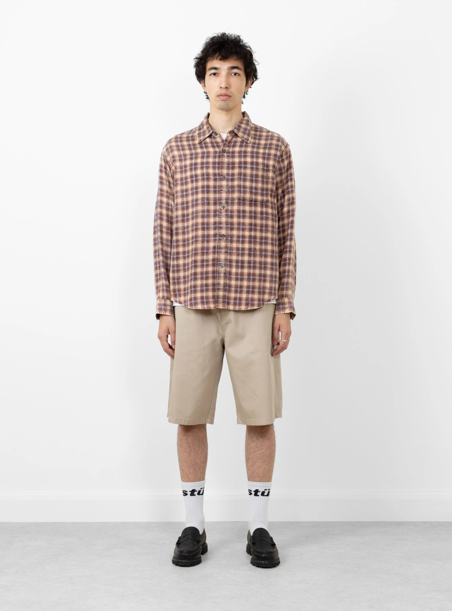 The Workgear Shorts from Stüssy arrive in a khaki. Falling to a relaxed fit with a mid-rise waist, the shorts are cut from a durable cotton twill. Side seam pockets and rear belt pockets with a snap button closure finish the shorts.