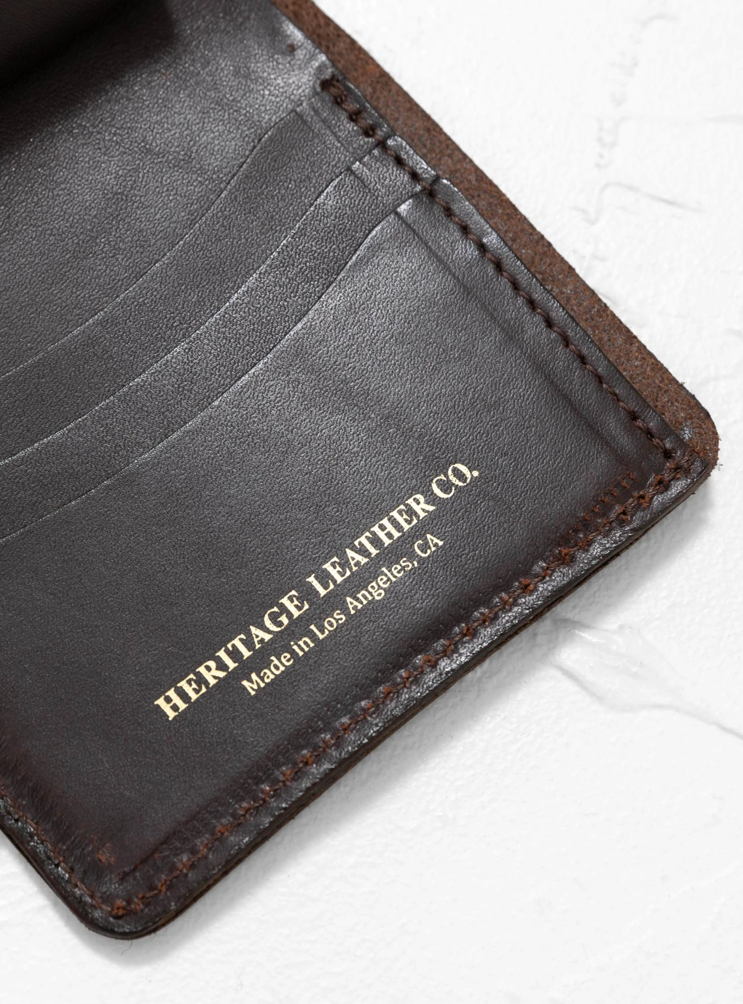 The Leather Brown Tri-Fold Wallet from Heritage Leather Company features three card slots, a coin compartment, and a popper clasp. Elegant and practical, it’s the perfect accessory for the modern man.