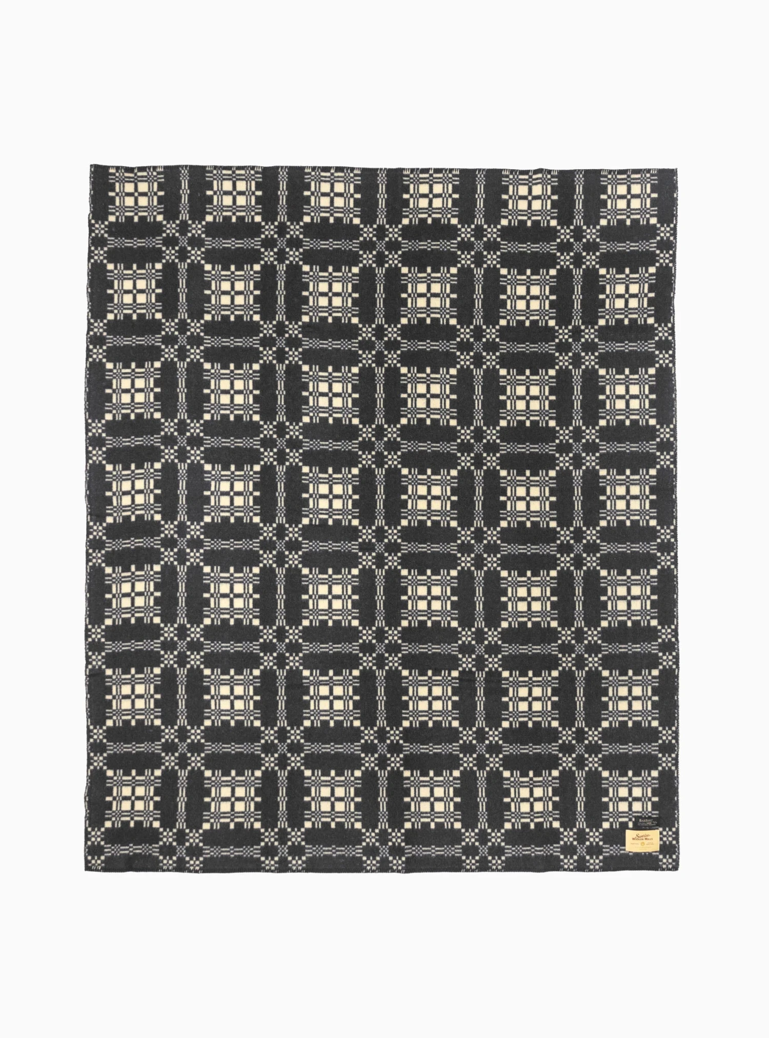 BasShu blankets are inspired by the quality and comfort of those made in North America in the early 1800s. The warmth and comfort of these past creations are reflected in their very own designs, with this blanket coming in pure wool woven in Izumi Otsu, Japan, and detailed with a black and beige pattern.