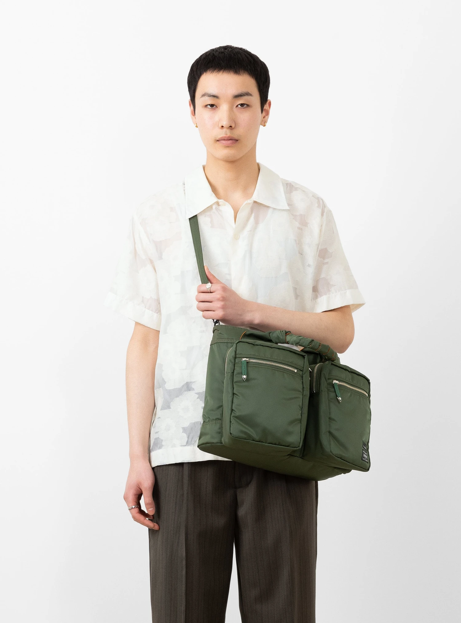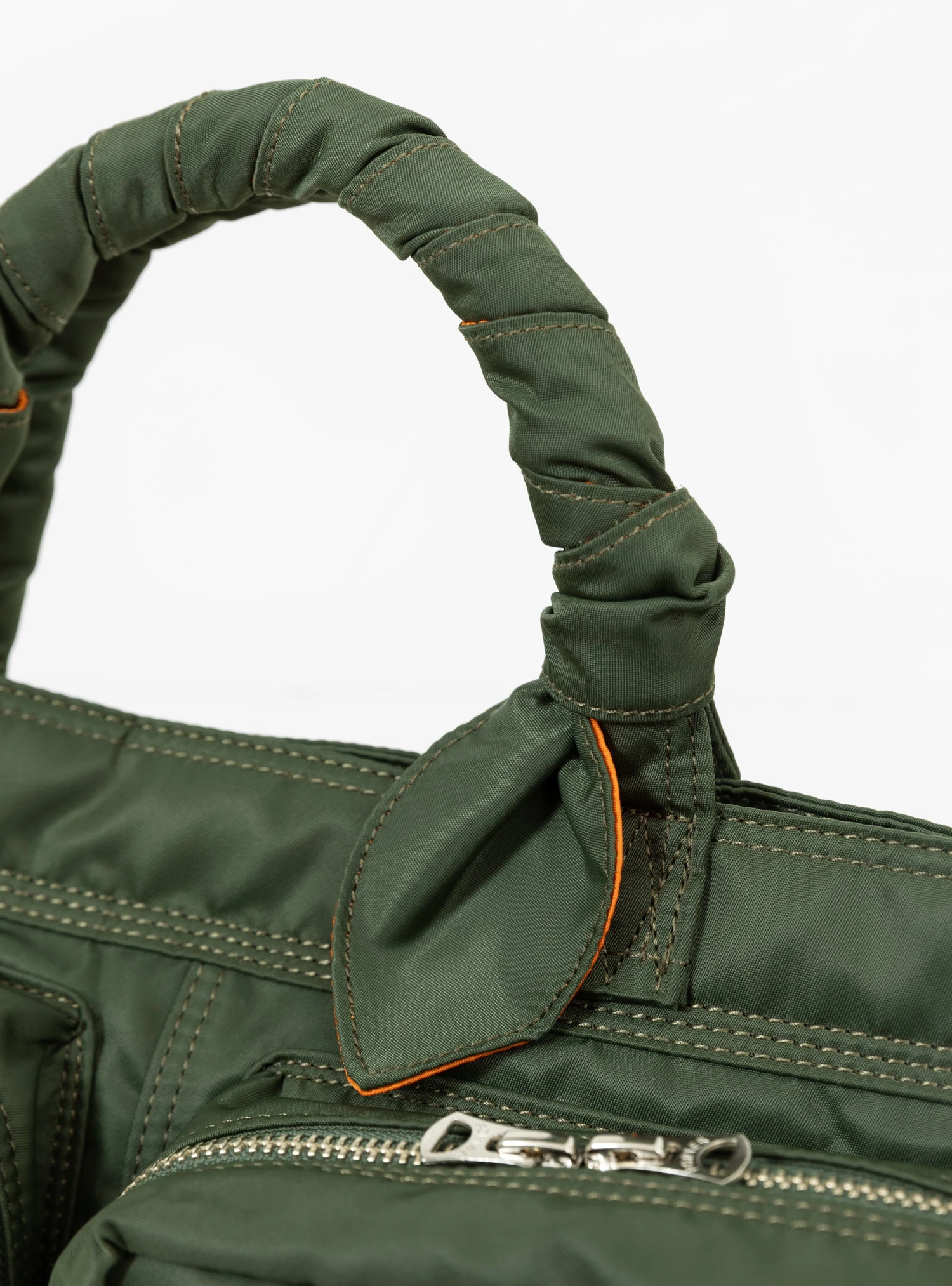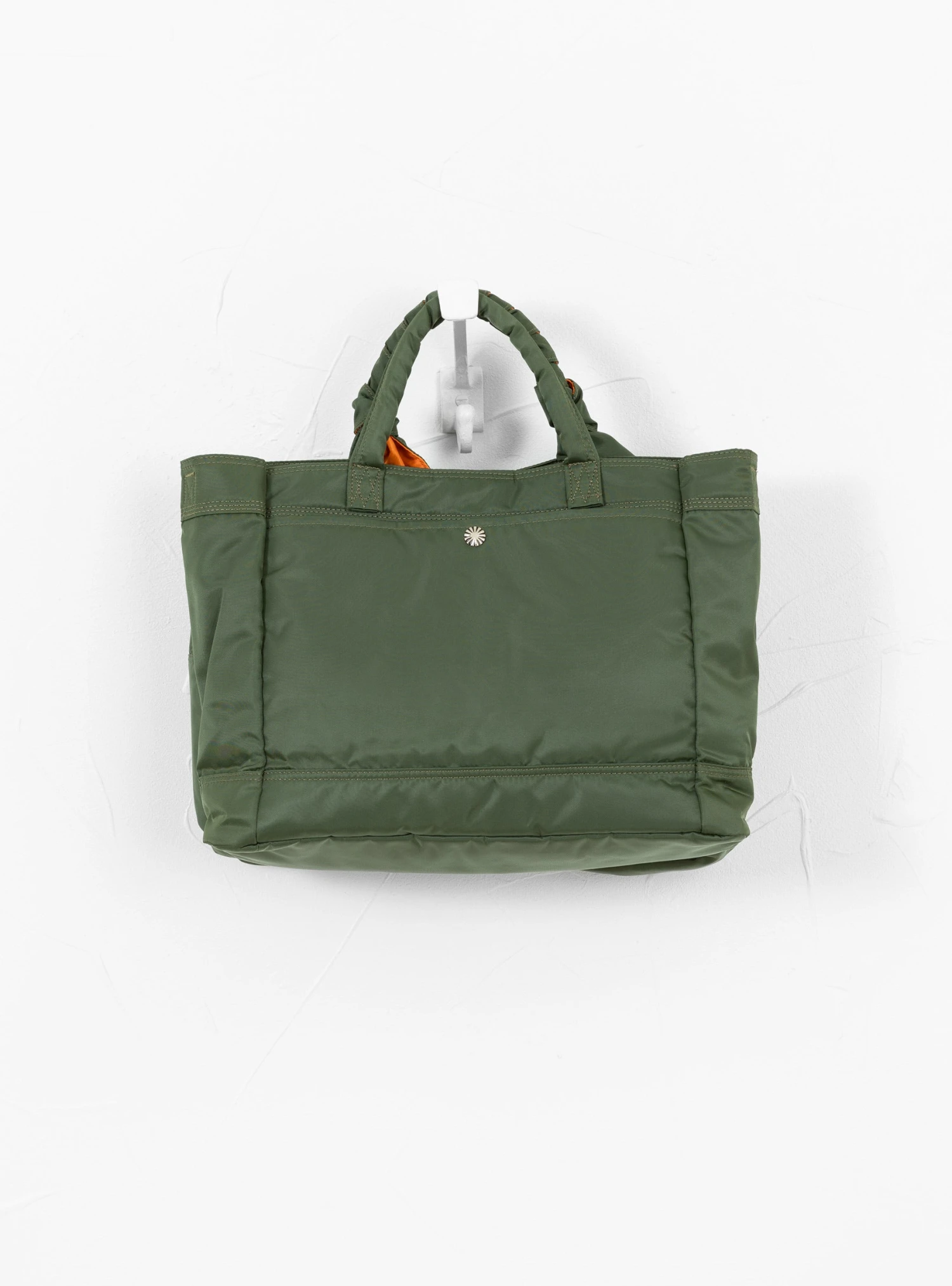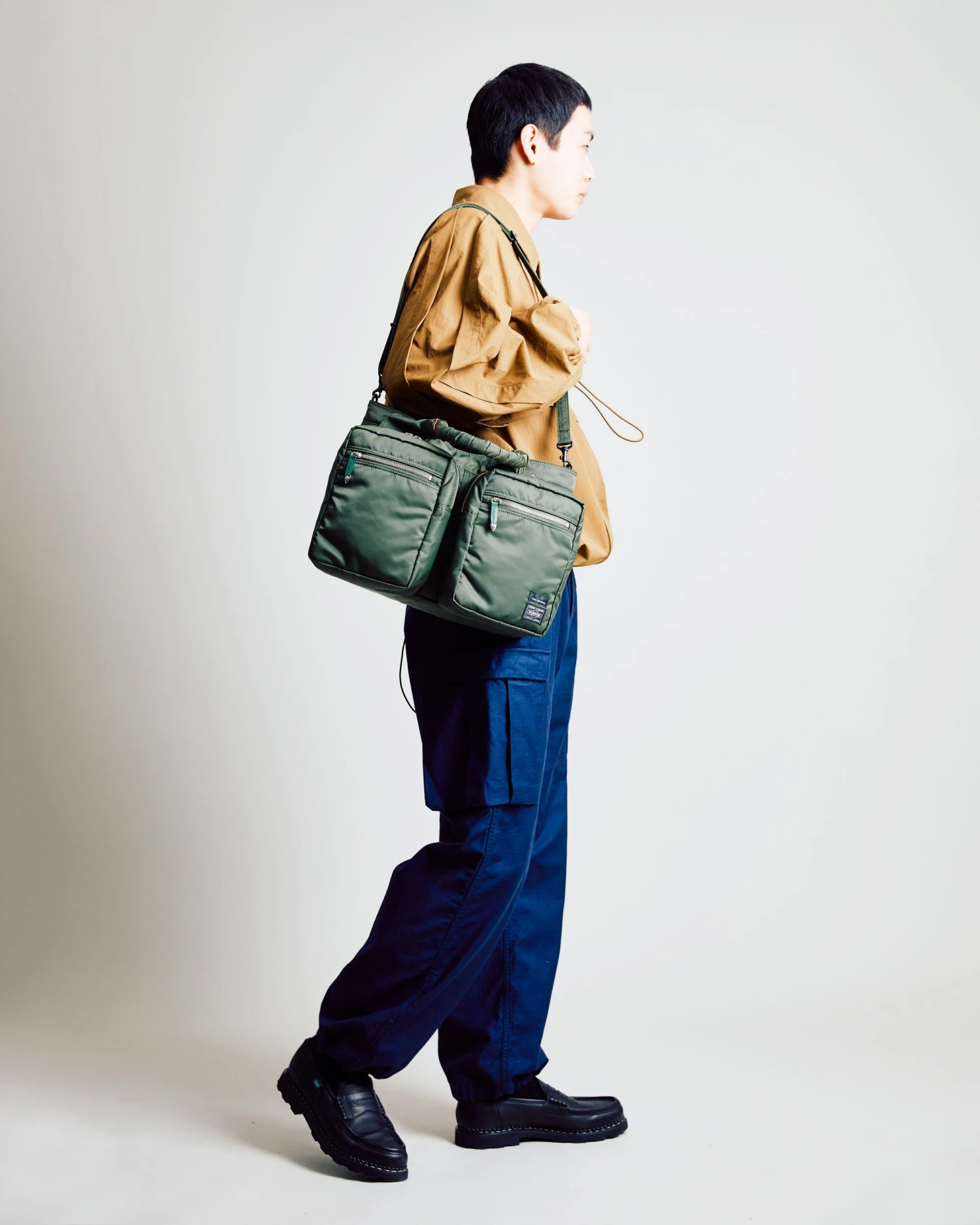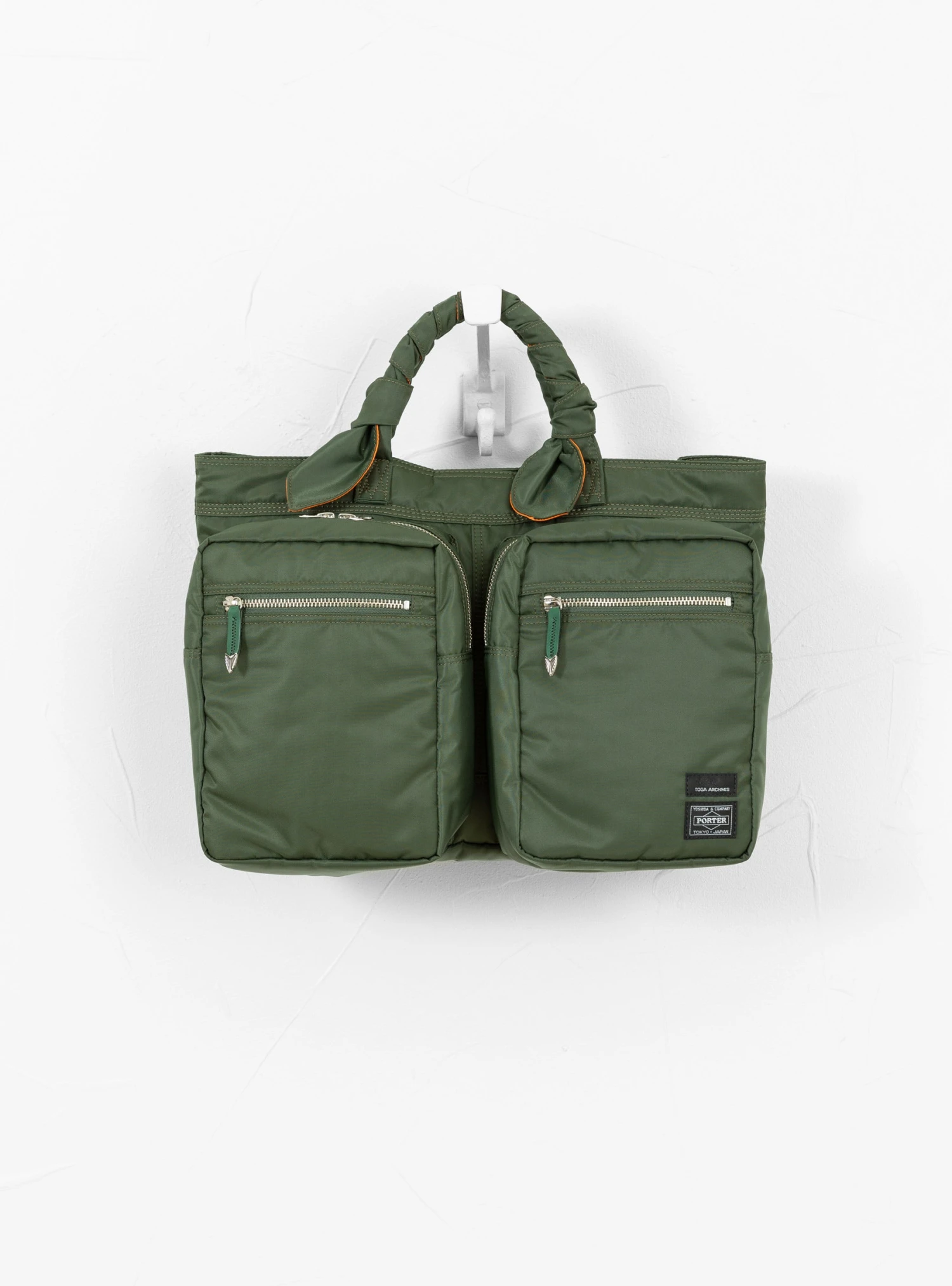 Iconic Japanese brands Toga and Porter Yoshida & Co. continue a series of incredibly sought after collaborations with the Tote Bag in green. Made in Japan, the tote bag blends Porter’s commitment to functional luggage with subtle, yet distinctive, detailing courtesy of Toga. The front pockets feature a central compartment, which is fastened with a two-way zip, as well as front slip pockets which are closed by zips adorned with Toga’s iconic metal embellishments. The main compartment features a rear slip pocket, both of which are closed by a Toga press-stud fastening. A wrap effect handle, with contrast lining, as well as a detachable shoulder strap offer multiple transit options.