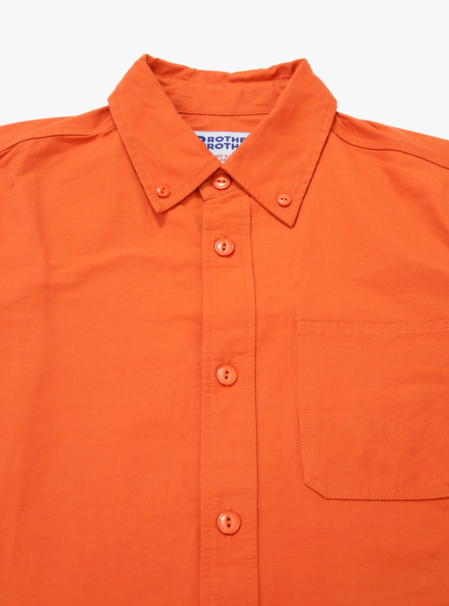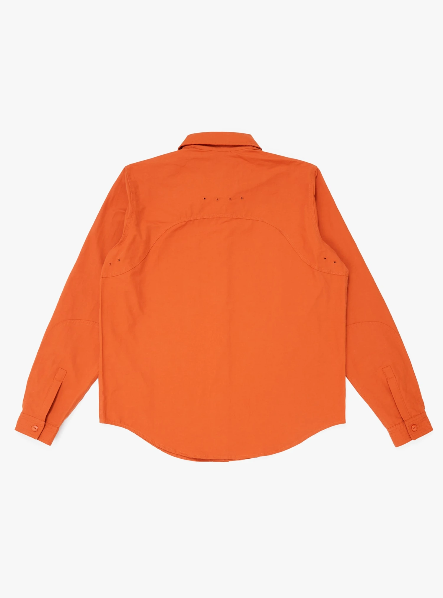 The Orange Yard Shirt by Brother Brother combines durability and comfort for any outdoor activity. Made from a gross grain cotton/nylon blend with eyelet vent holes and reinforced elbows